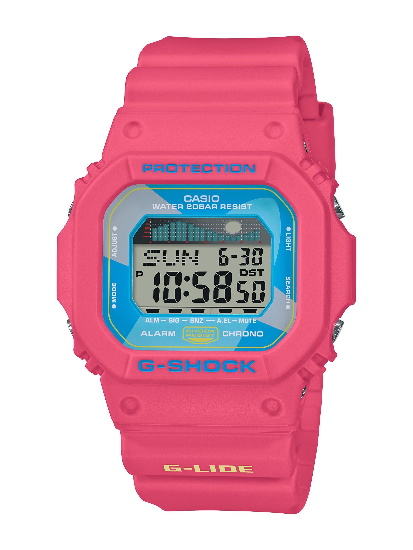 Natación: Refréscate en la piscina o en el mar mientras te ejercitas este verano. Nadar es una de las actividades más completas que existe, con un bajo impacto en huesos y articulaciones, activa y tonifica una gran cantidad de músculos, aumenta la resistencia cardiorrespiratoria y ayuda a quemar grasas. Antes de lanzarte al agua, asegúrate de contar con un reloj resistente como el GLX-5600VH, que además será de gran utilidad con su función de gráfico de olas si nadas a mar abierto.